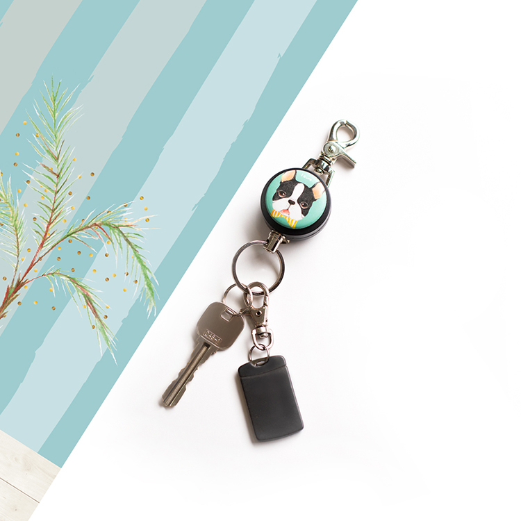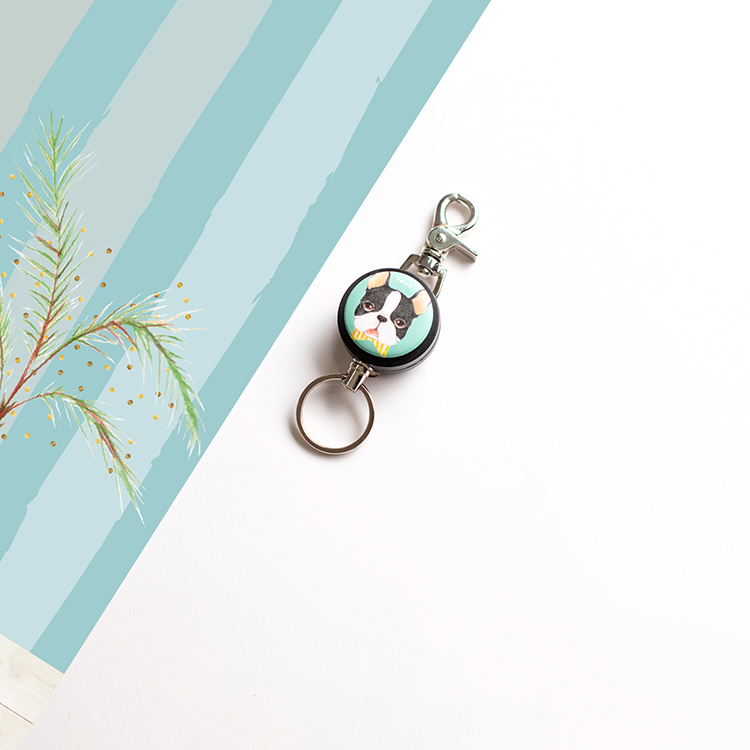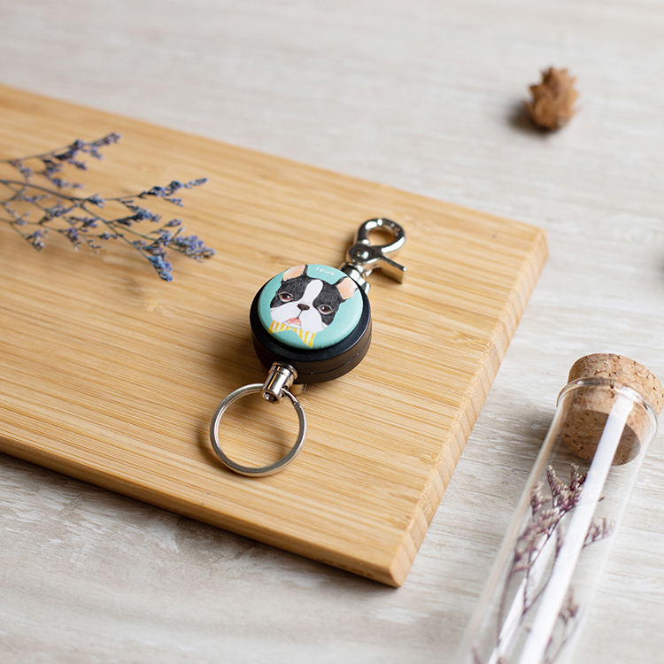 i好溜 伸縮鑰匙圈 -手繪風系列 / 領結波士頓